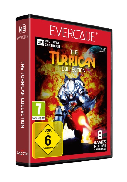 Die Turrican Collection für Evercade vereint acht Teile der klassischen Run-and-Gun-Serie. Enthalten sind die Amiga-Klassiker TURRICAN, TURRICAN II: THE FINAL FIGHT und TURRICAN 3 sowie die verschiedenen Konsolenversionen der Serie, darunter MEGA TURRICAN, SUPER TURRICAN 2 und weitere. Als besonderes Extra sind außerdem die Director's Cut-Versionen von MEGA TURRICAN und SUPER TURRICAN enthalten!